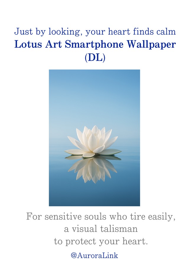 Product Description In the busyness of daily life and human relationships, have you ever felt quietly drained without realizing it? This set of lotus art smartphone wallpapers is created not to do something, but simply to be there for you. By gently meeting your eyes each time you look at your phone, the calm presence of the lotus helps guide your awareness back to your own center. Concept • You don’t need to “work on yourself” to heal • Just opening your screen is enough • A quiet visual reminder that you are already safe The lotus symbolizes inner calm, resilience, and returning to one’s true self even in difficult environments. Recommended For • People who easily absorb others’ emotions • Those who feel exhausted after conversations • Anyone who wants calm without effort • People who wish their phone could feel more comforting Contents • Lotus art smartphone wallpapers (9 images) • Compatible with iPhone and Android • For personal use only • Redistribution or resale is not permitted Psychological & Symbolic Meaning of the Lotus • Returning awareness to a single calm point • Gently quieting overstimulation from the outside world • Remembering your inner strength and resilience • Acting as a visual anchor for sensitive or empathic people This artwork is not meant to change you. It simply helps you remember the part of you that is already whole. How to Use • Set as your lock screen or home screen • Change the wallpaper based on your mood • Look at it when you want to take a slow breath Use it as a gentle visual amulet. Delivery & Format • Digital download (DL) • Available immediately after purchase • No shipping required Notes • This product is not intended for medical or therapeutic treatment • Individual experiences may vary • Due to the nature of digital products, refunds are not available